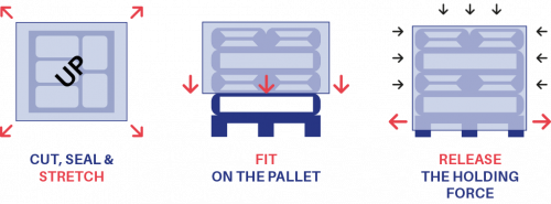 The Stretch Hood’s surface is designed to slide easily over the pallet surface, facilitating the wrapping process and ensuring efficient application;